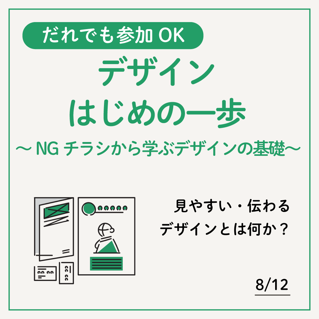 見やすい・伝わるデザインとは何か?について、NGなチラシの例を見ながら学んでいく講座です。デザインに興味がある方、PowerPoint・Canva・Illustratorなどをすでに使用していて、デザインのコツが知りたい方などにおすすめです。