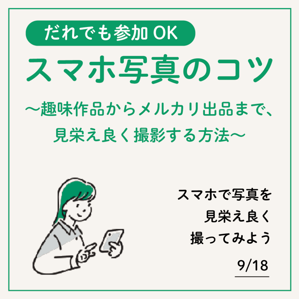 講座内ではメルカリなどのフリマサイトへの出品をメインにお伝えしますが、趣味作品の撮影をしたい方のご参加も大歓迎です。